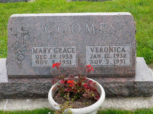 Veronica & Mary were the daughters of Felix E. Coomes (1900-1984) & Margaret M. Flanagan (1904-1987). They had two older sisters: Marie & Theresa who died in 2014 & 2015 consecutively. Their two brothers Frank & Edward appear to be still alive.